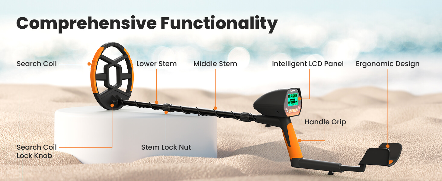 The 8'' large coil delivers smooth treasure hunt experience with higher accuracy (Up to 8 inches underground).