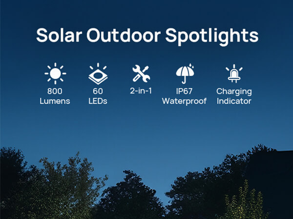 | Special Feature | Solar Spot Lights Outdoor Cool White 2 working Modes, Auto ON/OFF Solar Lights. 60 high power LEDs, 800 Lumens, Super bright. Quality assurance, feel free to contact. IP67 Water Resistant |
