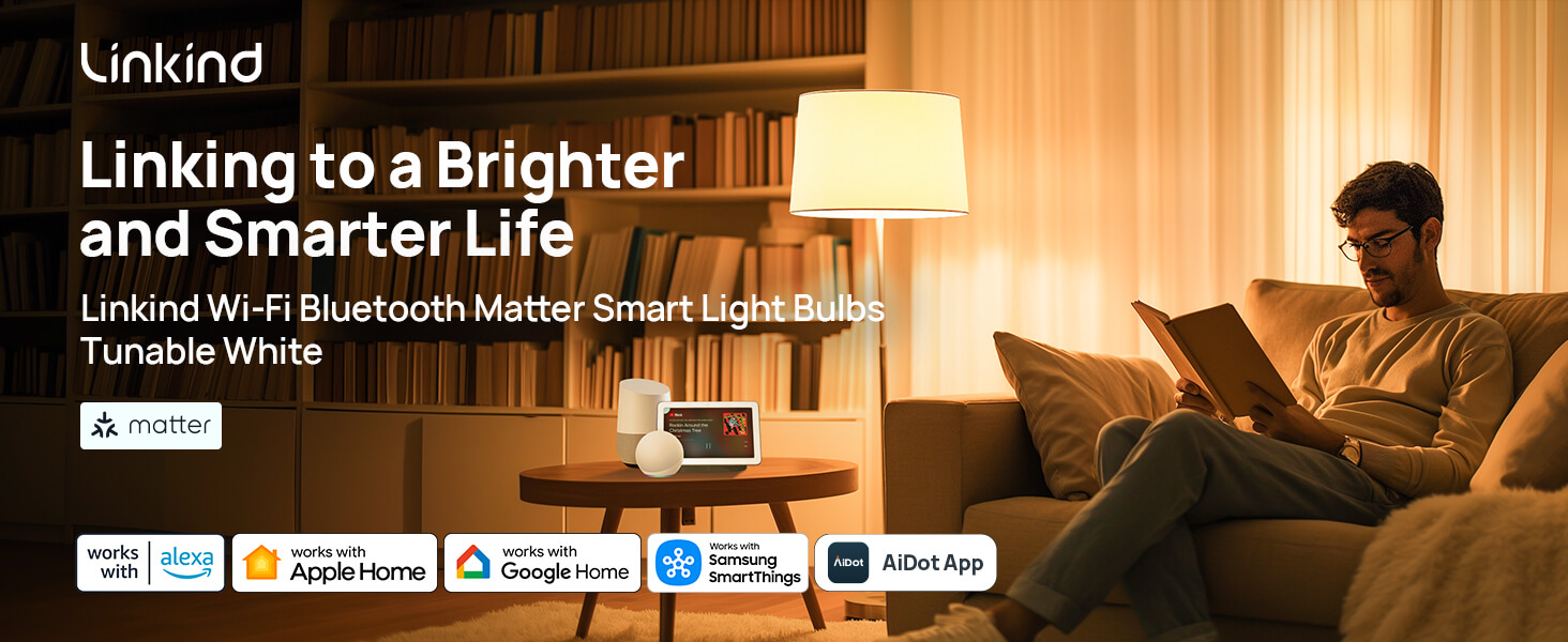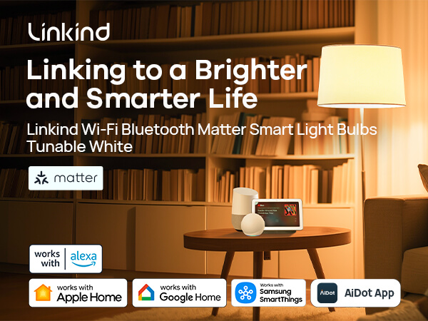 Linkind Matter Smart Light Bulb A19 CCT Tunable White 800lm - 4 pack