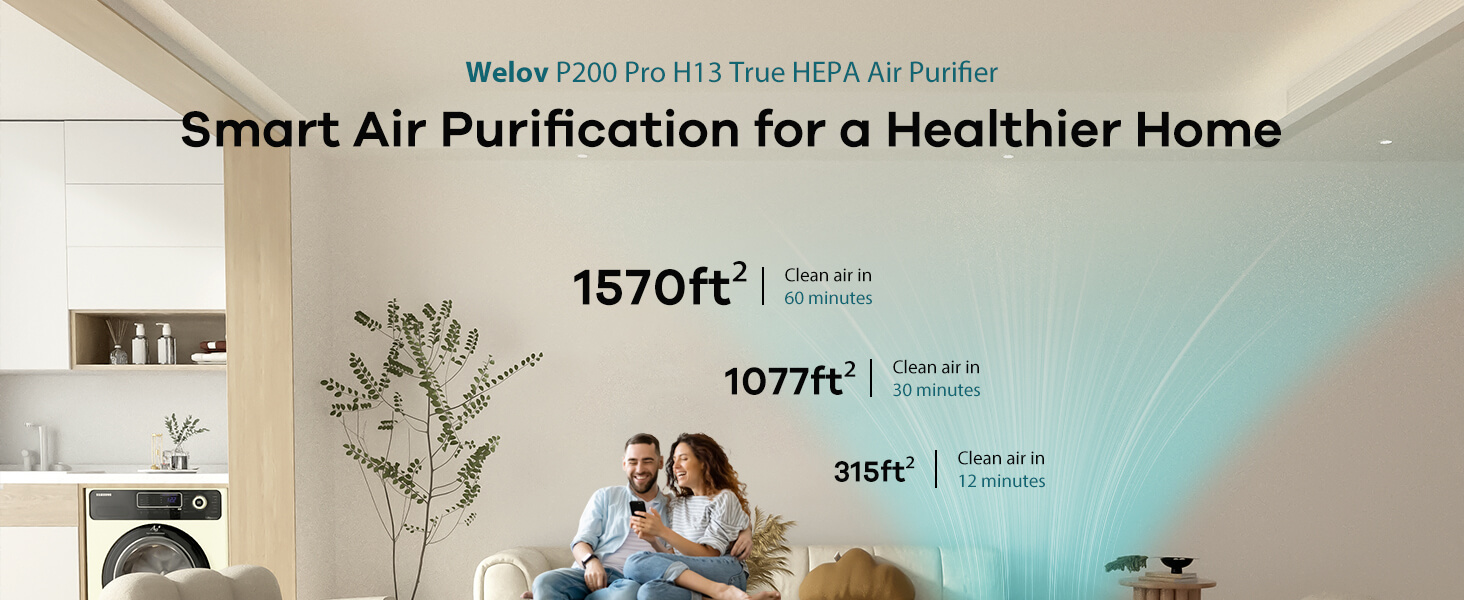 - Superior Coverage: Experience fresh, pure air with P200 PRO air purifiers' powerful purification. Purify a 315 ft² room in 12 mins and a 1570 ft² room in 1 hour. Whether it's your spacious living room, open office, or basement, this powerhouse has got you covered!