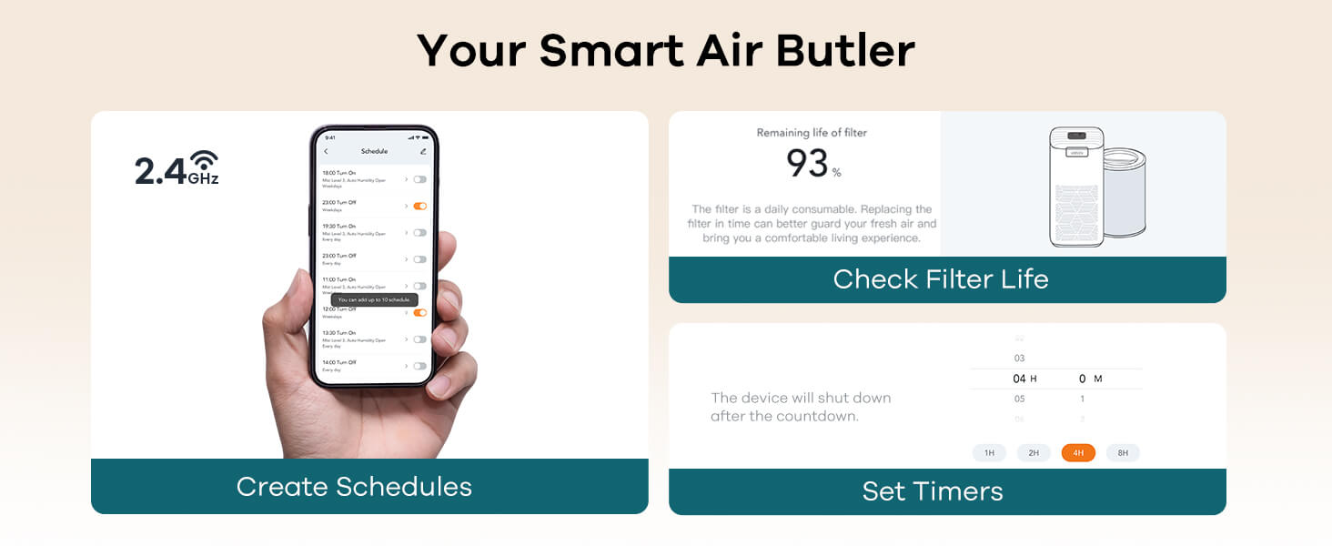 - Smart Connected: Seamlessly control your air quality from anywhere with Aidot App --- create schedules, set timers, and check filter life. Putting you in command even when you're away.