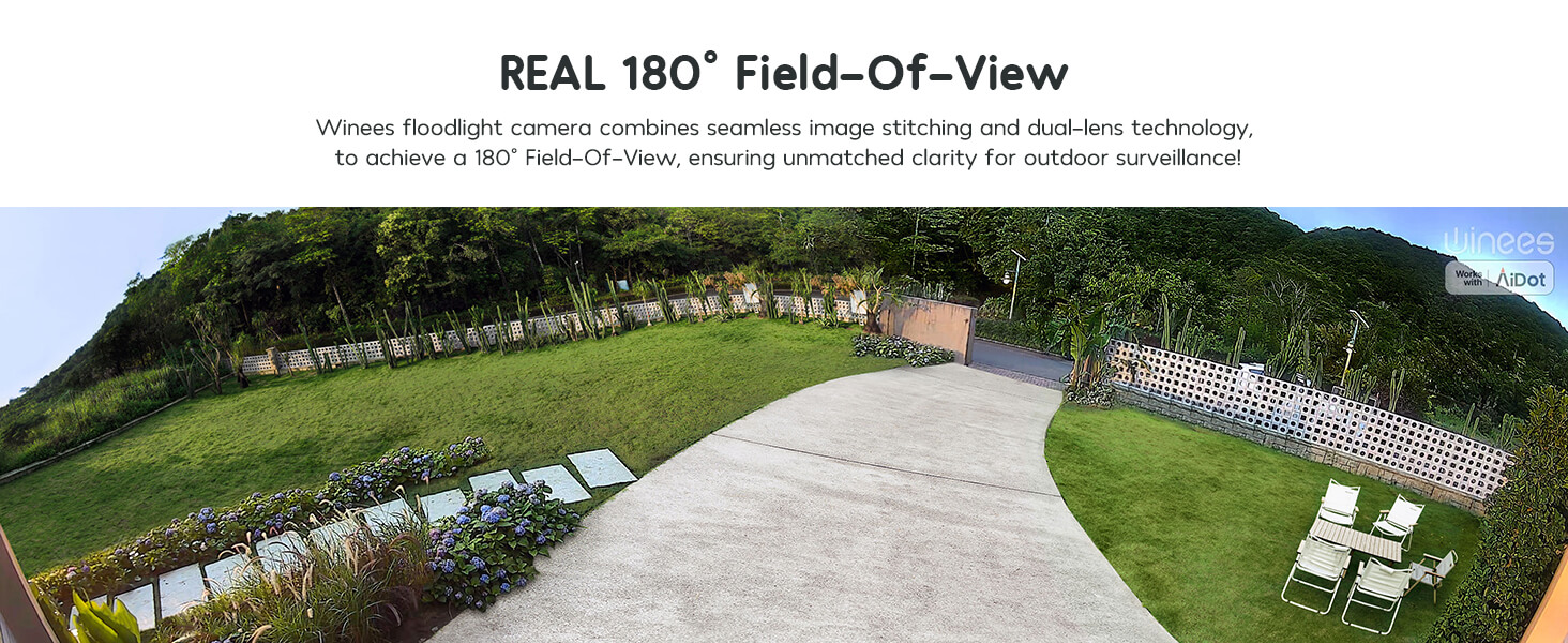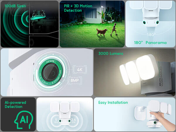 Winees F3 4K HD Floodlight Security Camera with Dual Lens 180 Degree Viewing Angle, 3D Motion Detection