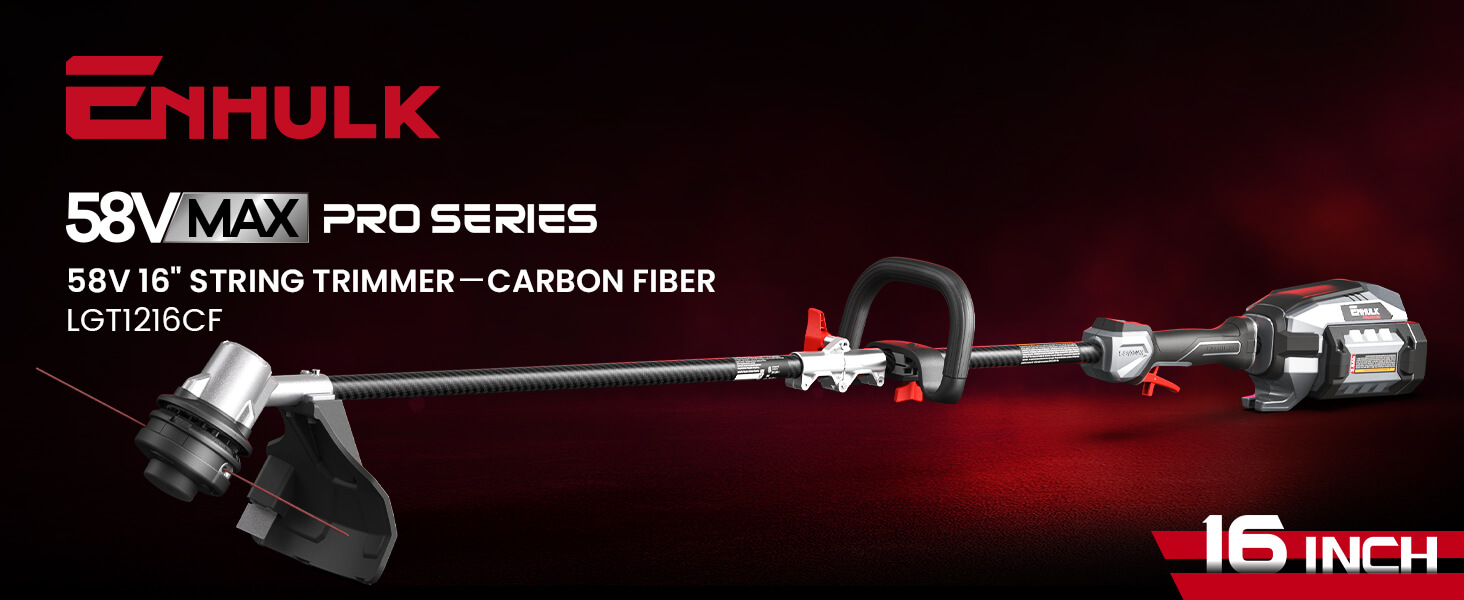 ENHULK 58V 16" String Trimmer - Carbon Fiber, 3-Speed Setting, Brushless Trimmer with EZ-HMI LED Control Panel