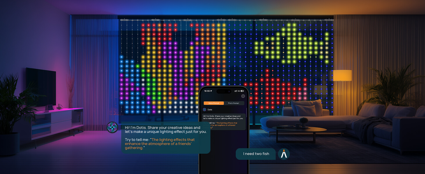 The Dotis assistant generates unique animated patterns, instantly transforming any space