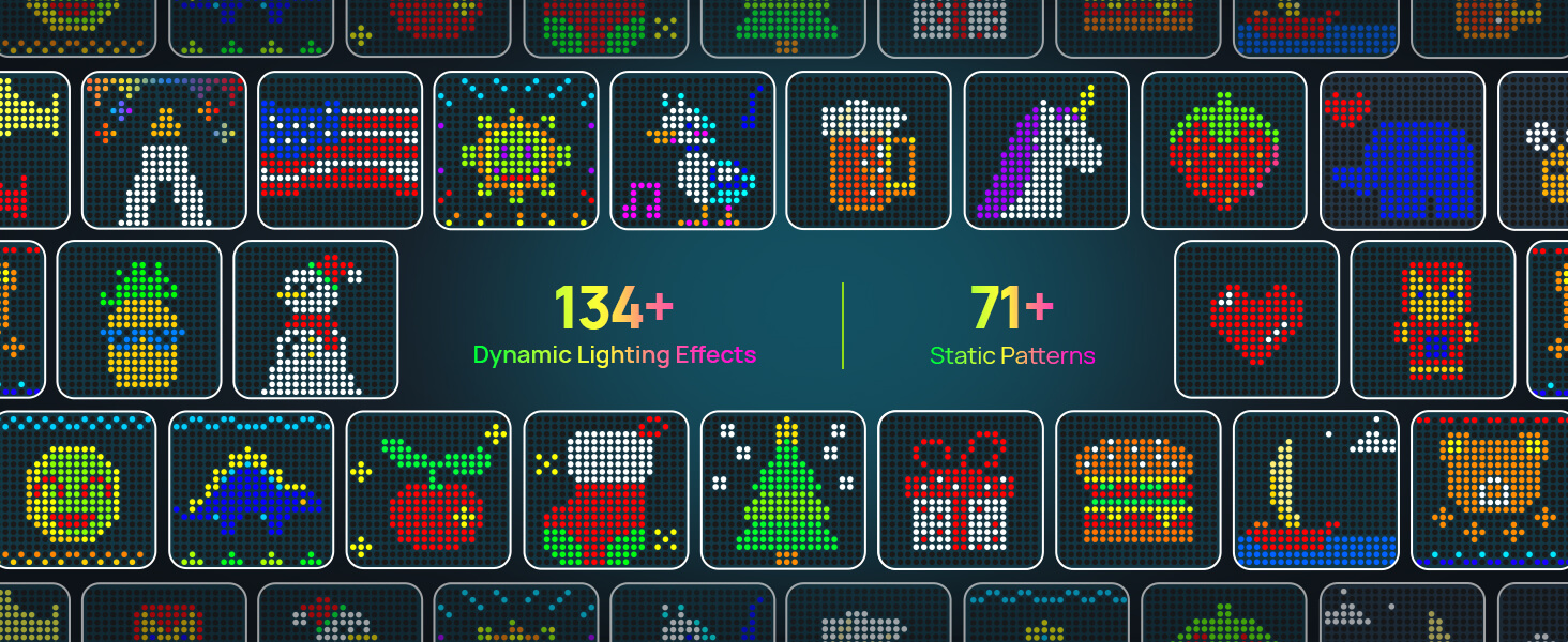 Customize each light's color and effect individually—spell names, design gradients, or animate intricate patterns.
