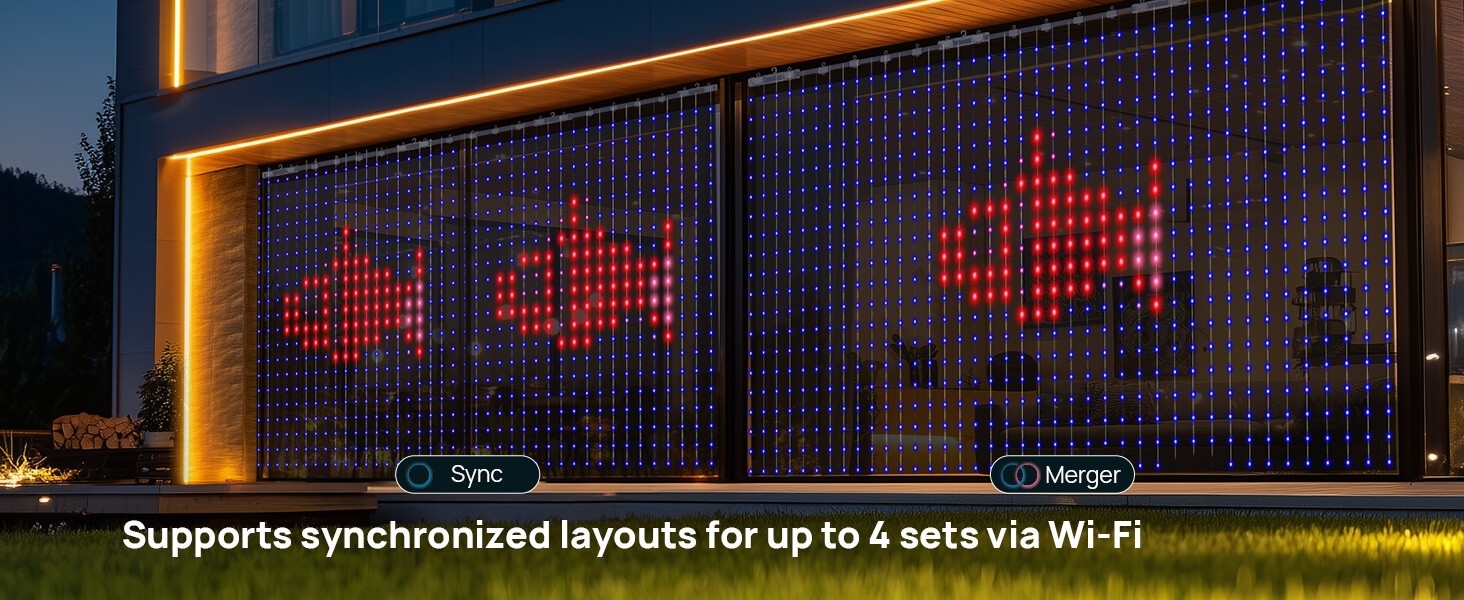 Merge technology syncs up to 4 sets of lights via Wi-Fi, combining patterns into one seamless display.