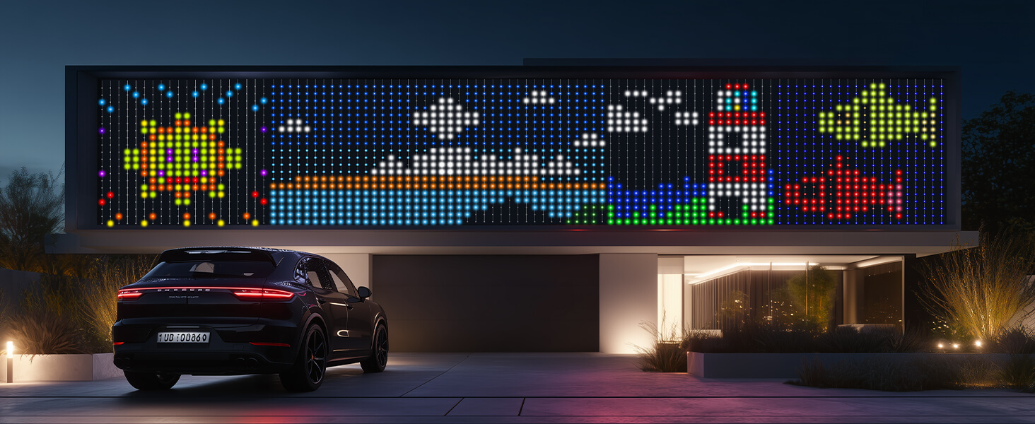 - [AI-Powered Pattern Generation] Create stunning light shows with Linkind AI technology. The Dotis assistant generates unique animated patterns—like "animal," "gaming," "Christmas," or "Holiday"—instantly transforming any space. Perfect for creating vibrant RGBW multicolor Christmas lights for garages or patios to spread holiday cheer. You can also turn photos into dynamic displays, ideal for designing eye-catching window Christmas lights that catch everyone's attention.