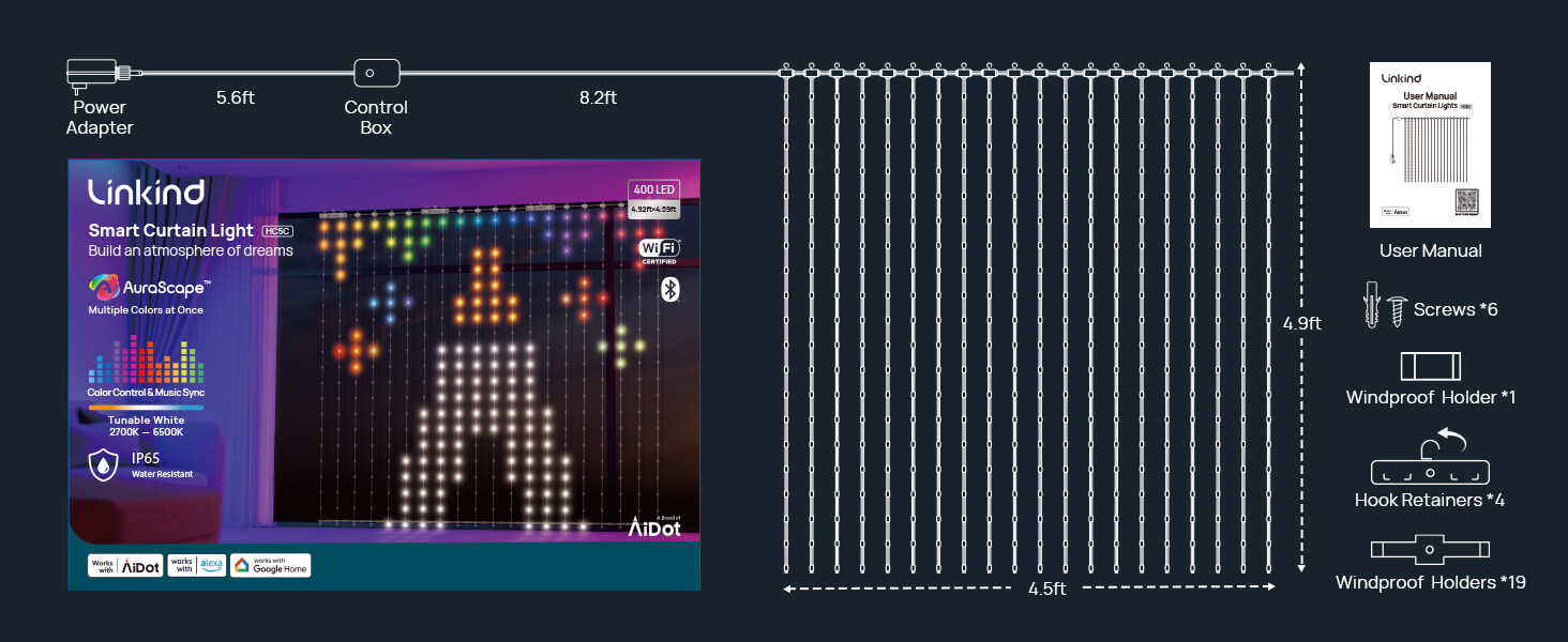 Linkind Christmas Smart Curtain Lights - APP Control, AI Pattern GIF Display, Works with Alexa Google Home, 400 LEDs Color Changing Lights Outdoor Indoor for Bedroom Window Christmas Decor, 4.9×4.5ft