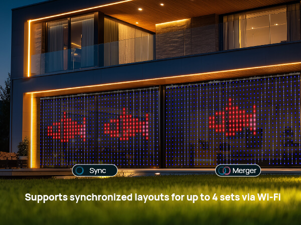 Merge technology syncs up to 4 sets of lights via Wi-Fi, combining patterns into one seamless display.