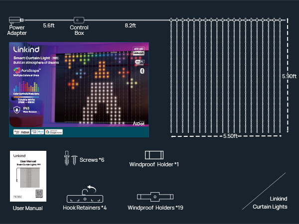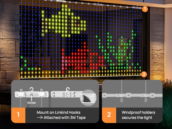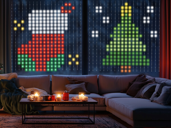 Linkind Christmas Smart Curtain Lights - APP Control, AI Pattern GIF Display, Works with Alexa Google Home, 400 LEDs Color Changing Lights Outdoor Indoor for Bedroom Window Christmas Decor, 4.9×4.5ft