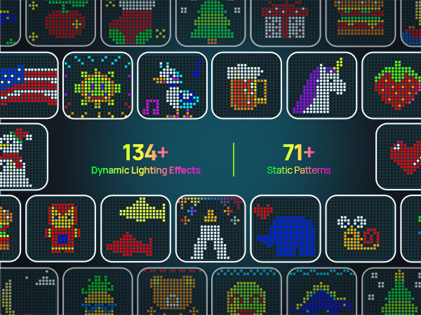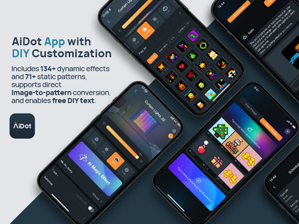 | Special Feature | 134+ Dynamic Lighting Effects & 71+ Static Patterns & Music Scene, 400 LEDs 20 × 20 Pixel Pattern by GIF Pictures Text, Dotis AI-Powered Light Show |
