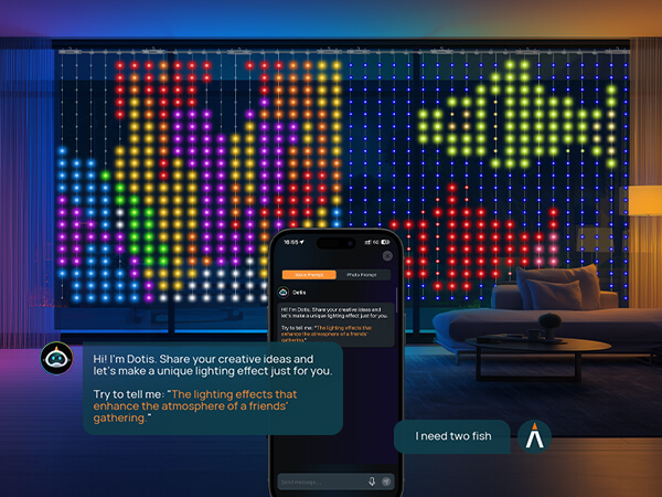 The Dotis assistant generates unique animated patterns, instantly transforming any space