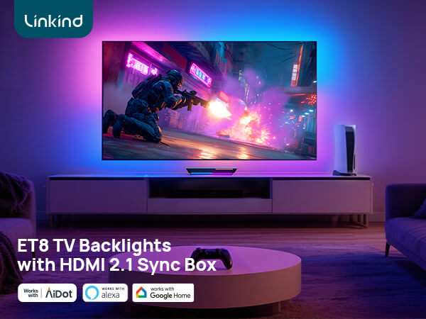 Linkind TV Backlight, HDMI 2.1 Sync Box with AI LumiSync Technology, Supports 8K@60Hz, Cuttable LED Backlights Sync to Screen for 27-90 inch TVs