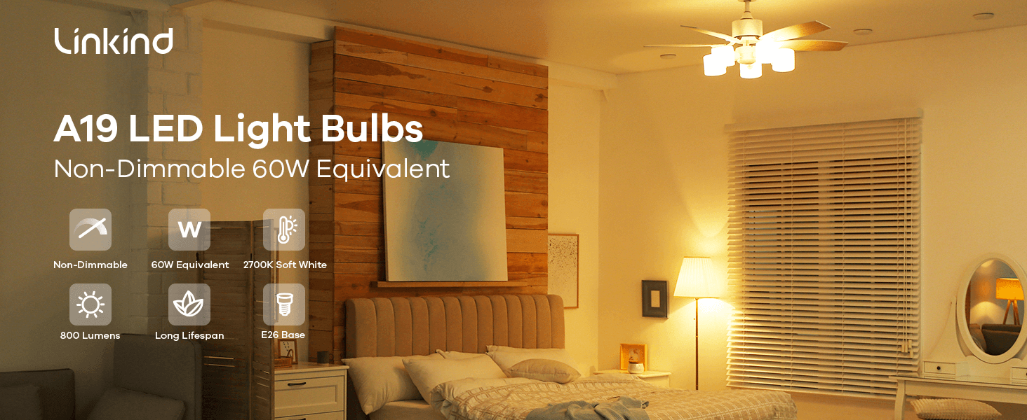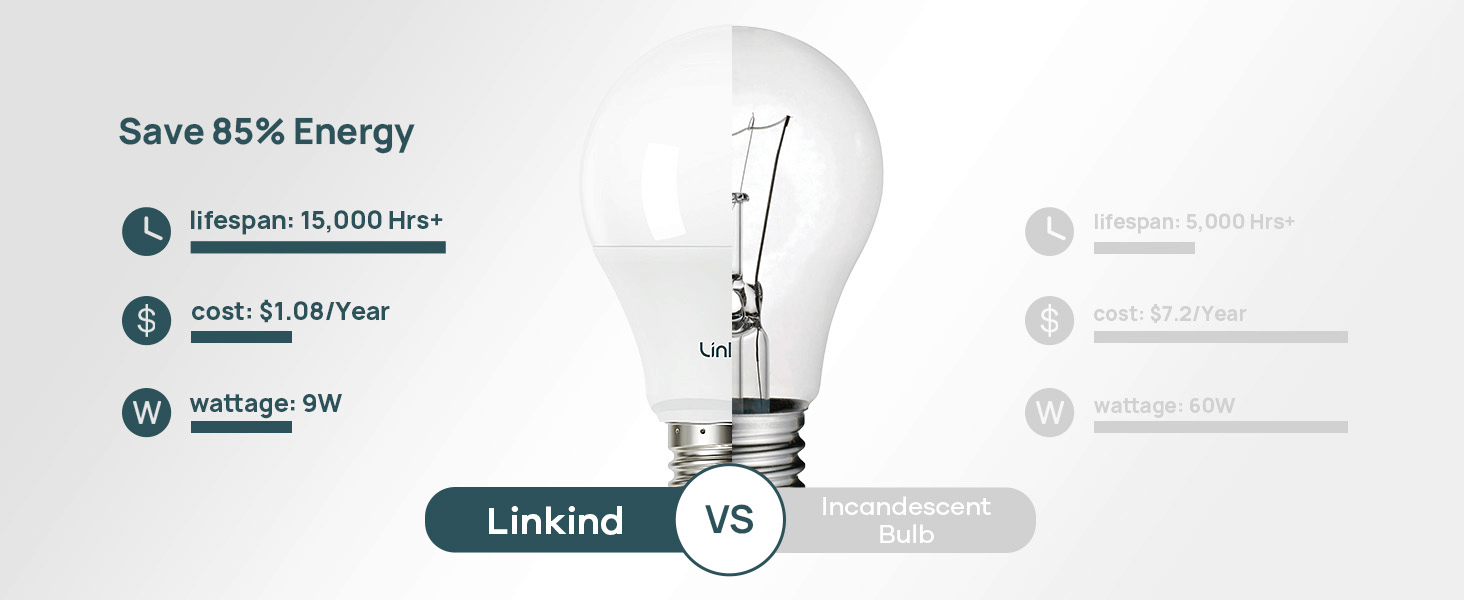 - Energy Efficient and Energy Saving-- Adopting energy-efficient LED chips, Linkind non-dimmable A19 LED light bulbs save up to 85% on your electricity bill by replacing 60 watts incandescent light bulbs. They provide more energy efficiency but less heat output, making them a great alternative to 60W incandescent bulbs.