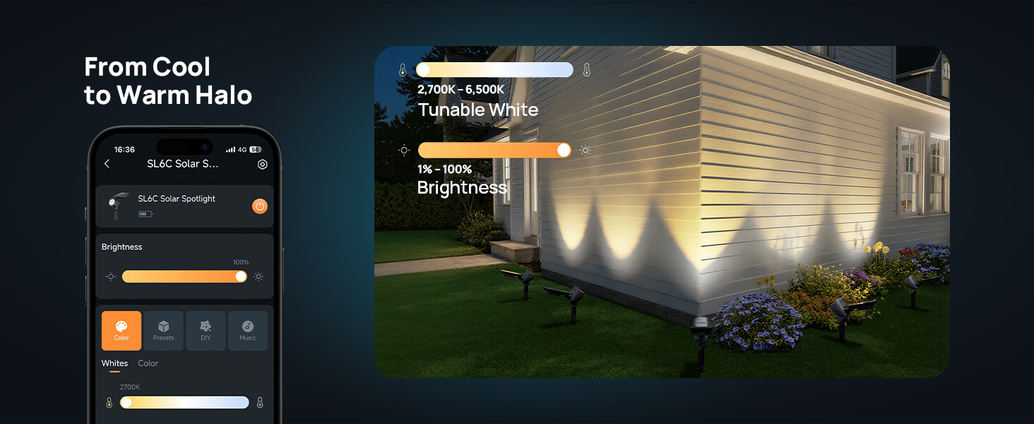 Auto on/off: Built-in luminance detection for dusk-to-dawn operation Solar charging: Automatic charging during the day Push button control: Manual power and basic settings Basic white light: Standard illumination functionality