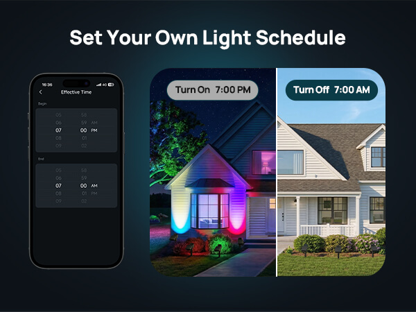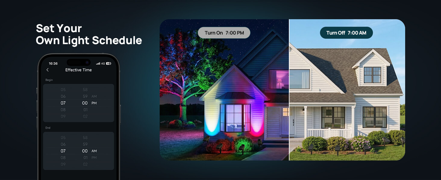 For accent lighting (32° inner beam): 3-6 feet high: Best for highlighting trees, shrubs, or architectural features Creates focused spotlighting effect on specific elements For area coverage (82° outer beam): 6-10 feet high: Provides broader yard illumination Higher mounting gives wider coverage area due to the 82° flood pattern