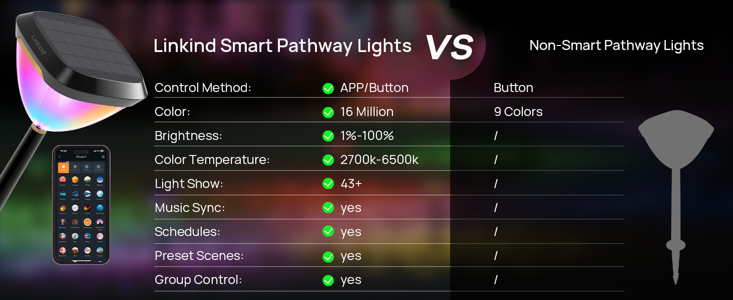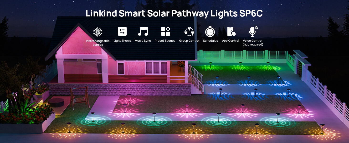 Linkind Smart Solar Pathway Lights SP6C, APP Control Solar Lights Outdoor Waterproof with 5 Swappable Lenses Landscape Lighting, Color Changing Garden Decor for Yard, Patio, Driveway(4 Pack)