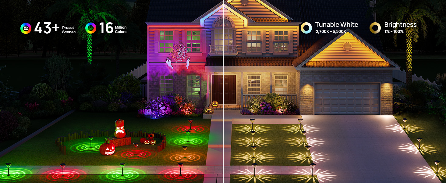 • 【Music Sync and Preset Scenes】Elevate your outdoor ambiance with landscape lights featuring music sync and preset scenes. Sync the lights to your favorite tunes, choose from default presets or DIY—perfect for parties, holidays, or everyday magic