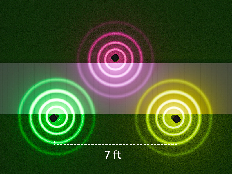 When using a staggered path lighting approach, we recommend installing the lights about 7ft away from other lights.