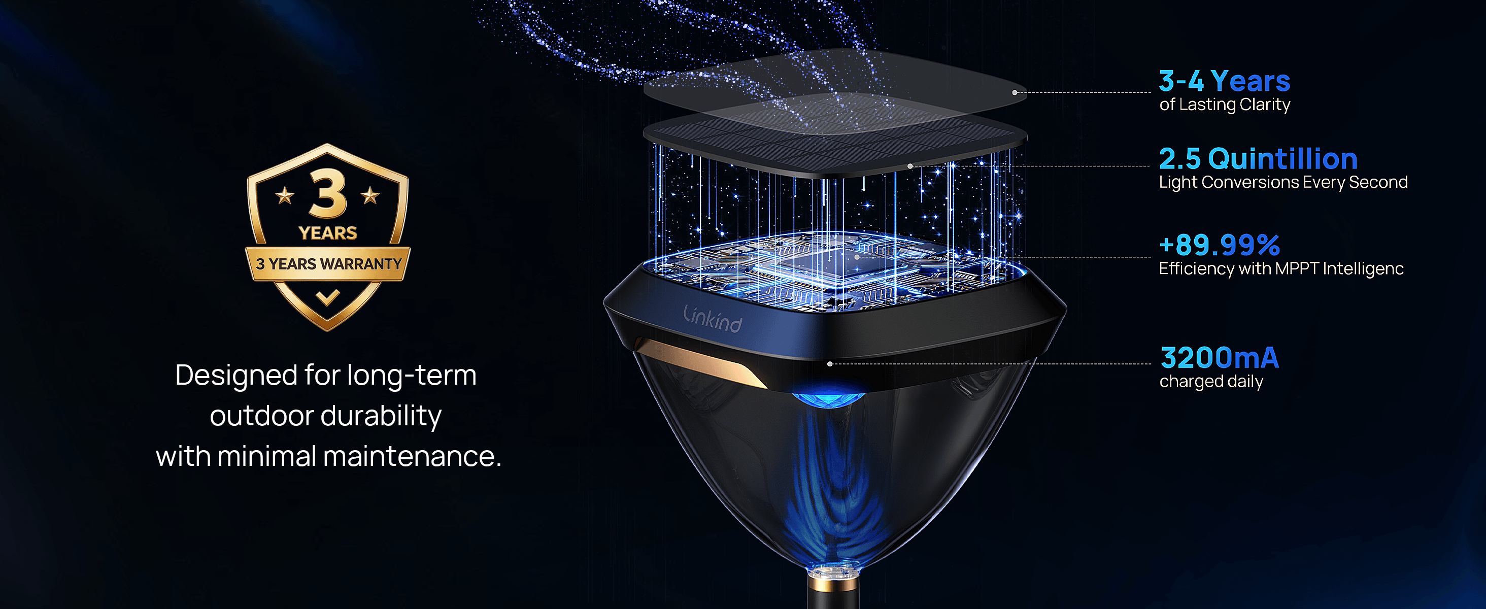 MPPT Tech and 1.8w large solar panel deliver high-lumen output with unmatched stability, ensuring solar path lights stay brighter longer—day or night, rain or shine.