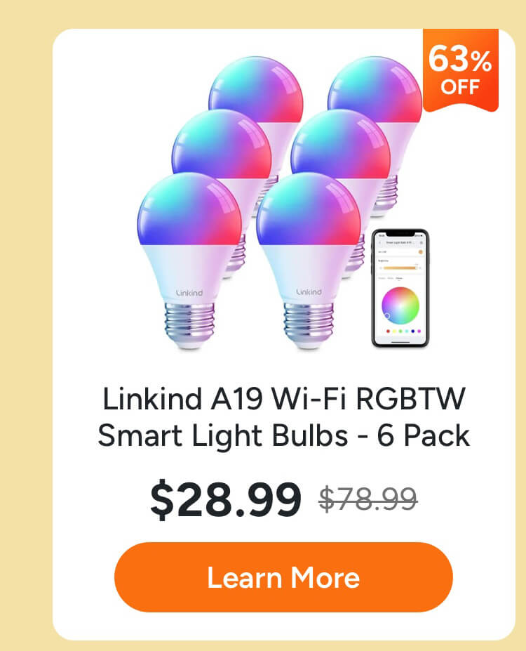 • Linkind BR30 Smart WiFi Flood RGBTW Color Changing Light Bulbs, RGBTW Color Changing Light Bulb, 1800K-6500K Tunable White - 4 Packs