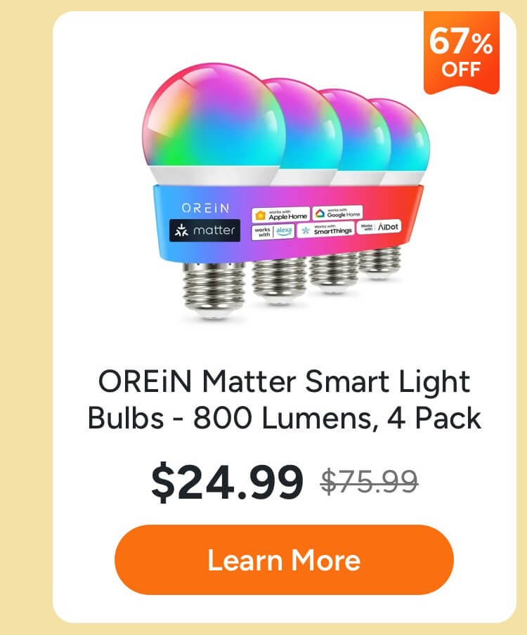 • OREiN Matter Smart Light Bulbs, Work with Alexa/Google Home/Apple Home/SmartThings