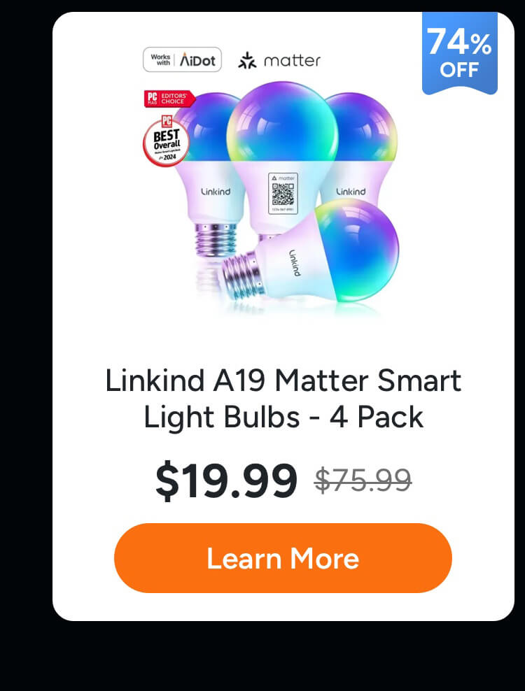 • Linkind Matter WiFi Smart Light Bulbs, Smart Bulb Work with Apple Home, Alexa, Google Home, SmartThings,A19 E26 60W 800LM -4 Pack