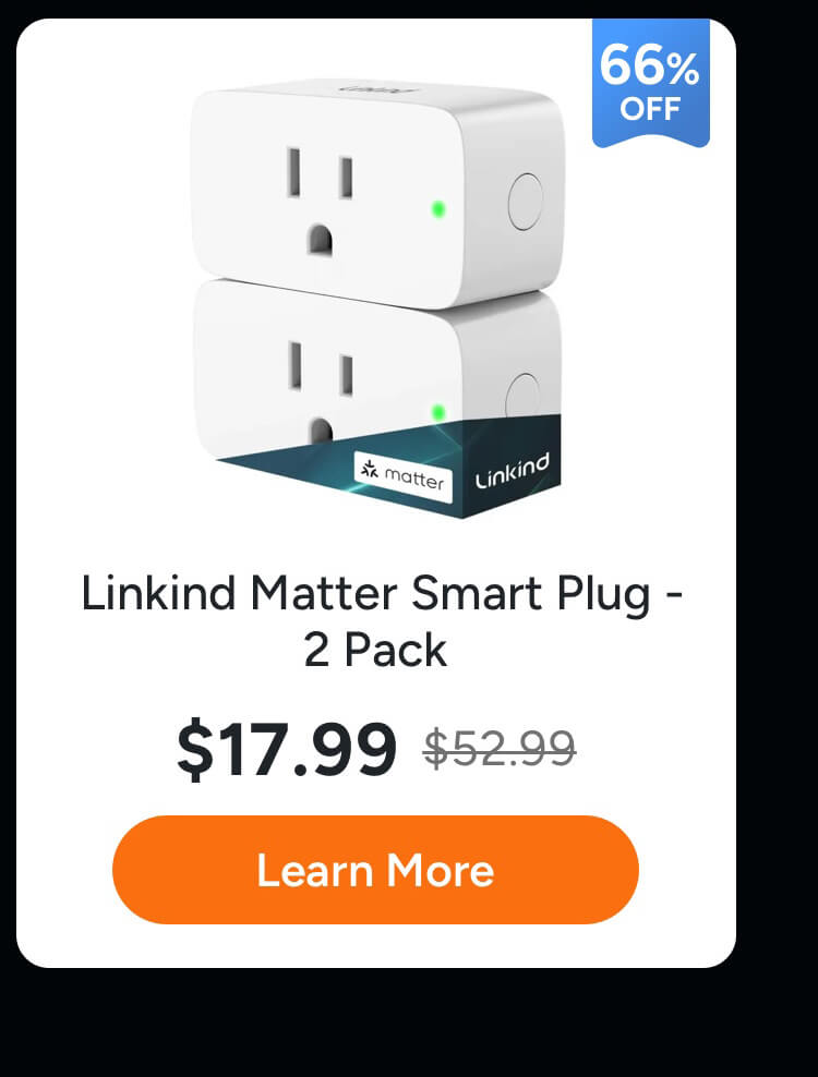 • Linkind Matter Smart Plug, Work with Apple Home, Siri, Alexa, Google Home, SmartThings, Smart Outlet 15A/1800W Max- 4 Pack