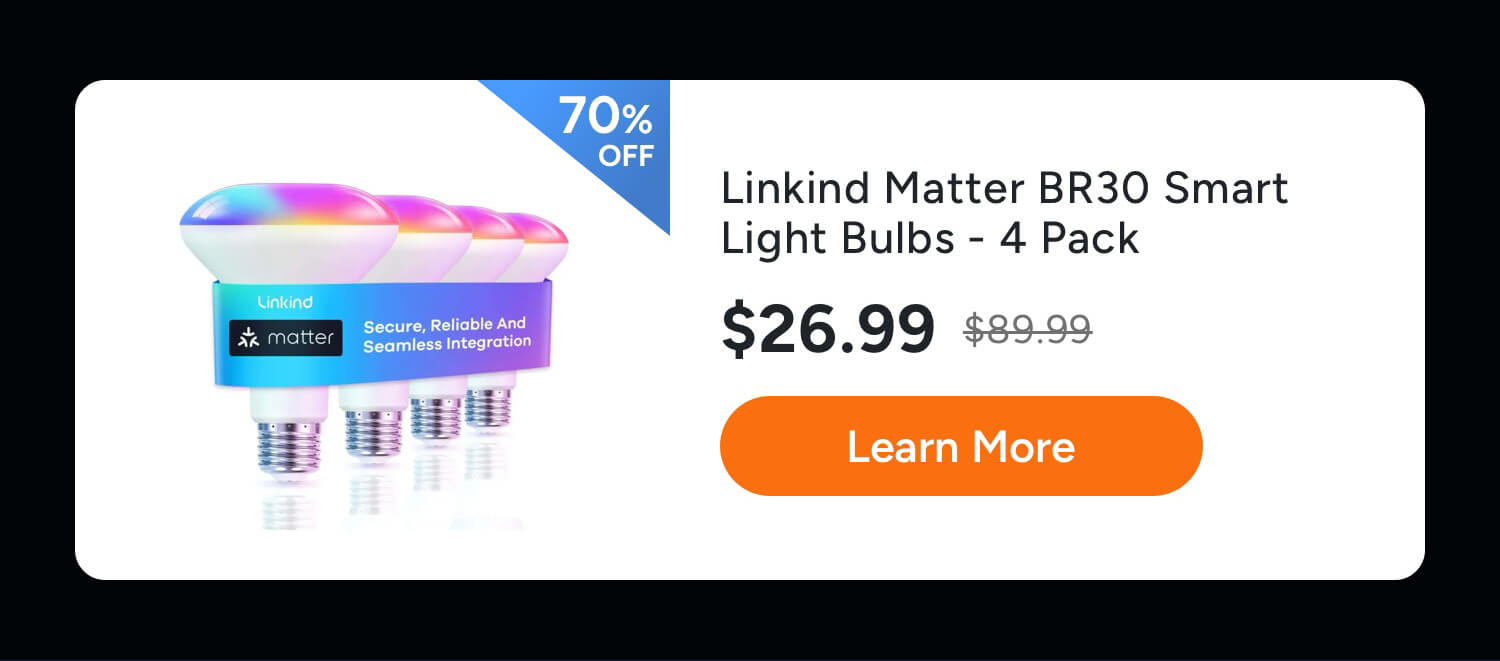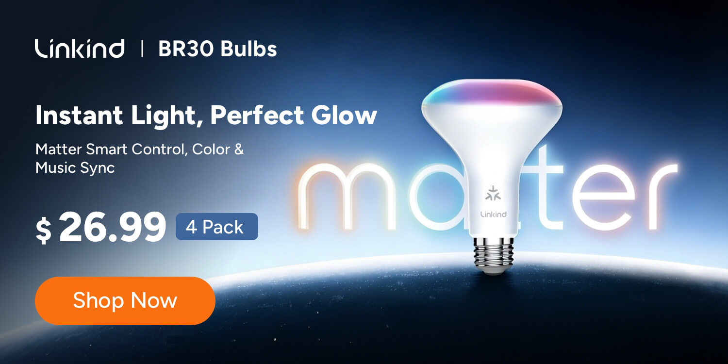 • Linkind Matter BR30 Smart Light Bulbs, RGBTW LED Color Changing Light Bulbs Work with Alexa Apple Home Google Home SmartThings