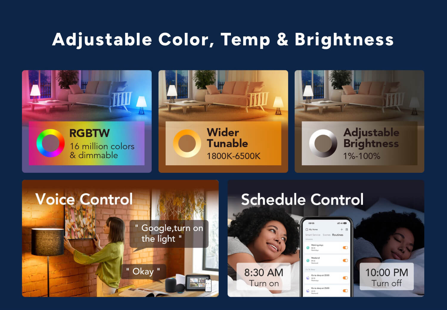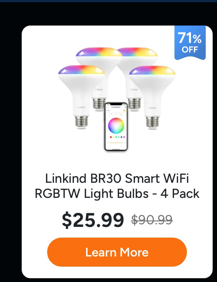 • Linkind BR30 Smart WiFi Flood RGBTW Color Changing Light Bulbs, RGBTW Color Changing Light Bulb, 1800K-6500K Tunable White - 4 Packs