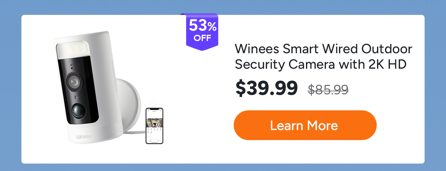 • Winees F103 Smart Wired Outdoor Security Camera with 2K HD, 360° View-1 Pack