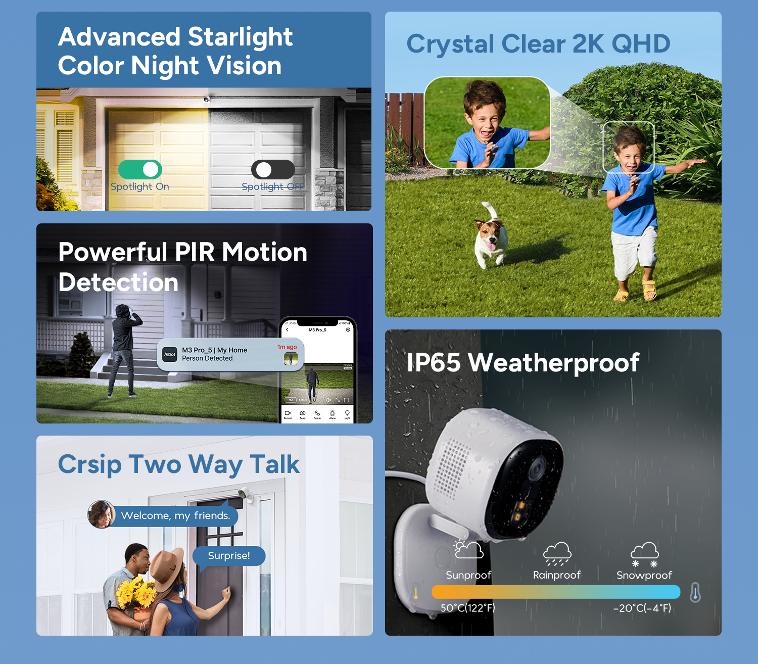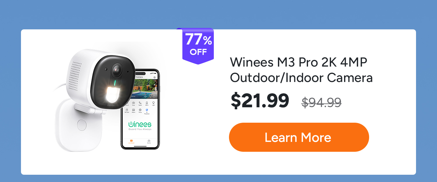 • Winees M3 Pro 2K 4MP Outdoor/Indoor Camera for Home Security, Human/Pet AI Detection, Color Night Vision,-1 Pack
