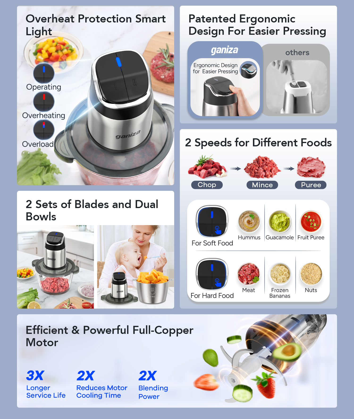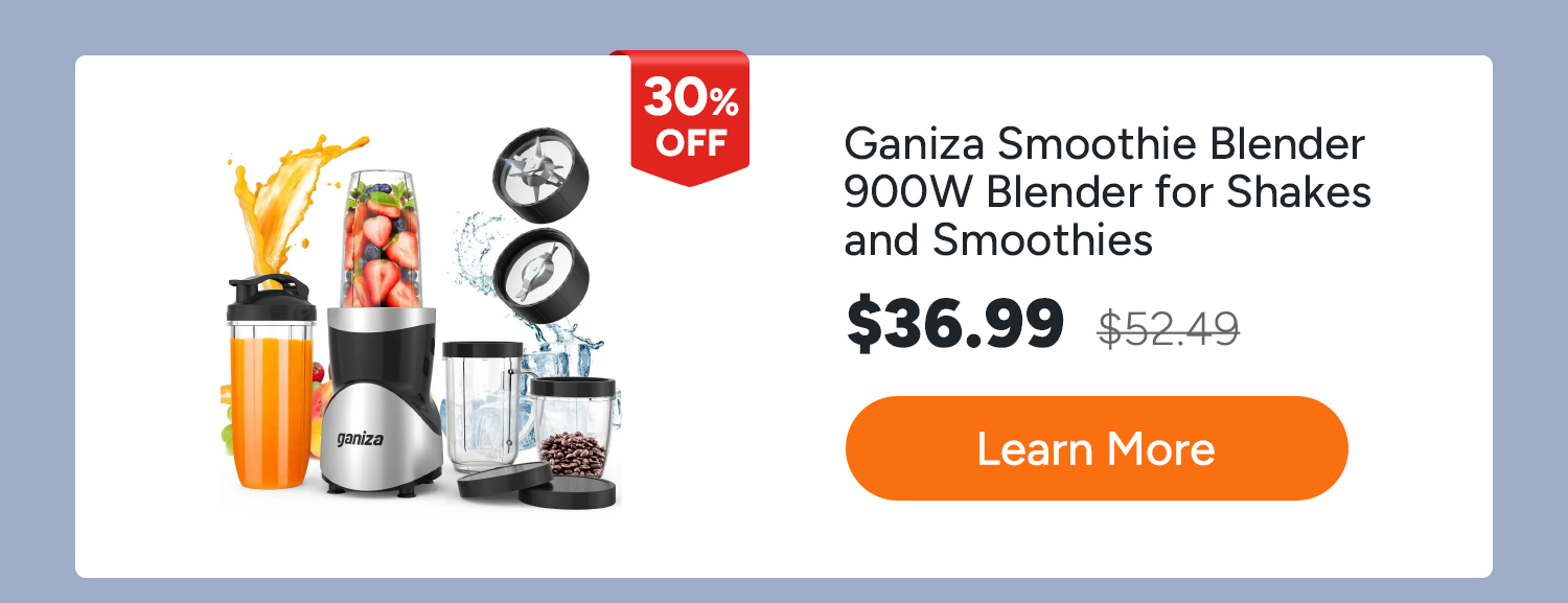 • Ganiza Smoothie Blender, 12-Piece Set for Shakes and Smoothies, 43oz Large Blender Cup & 2 x 24oz Portable Cups.