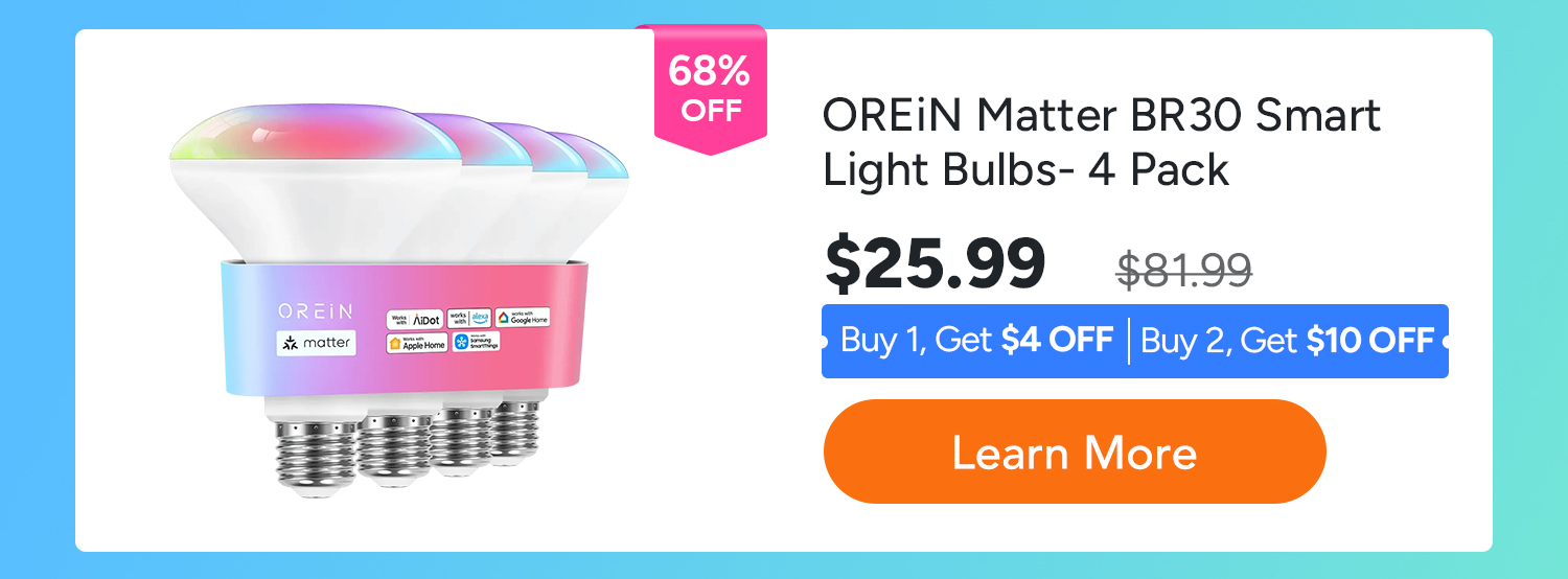 • OREiN Matter Smart Light Bulbs, Work with Alexa/Google Home/Apple Home/SmartThings