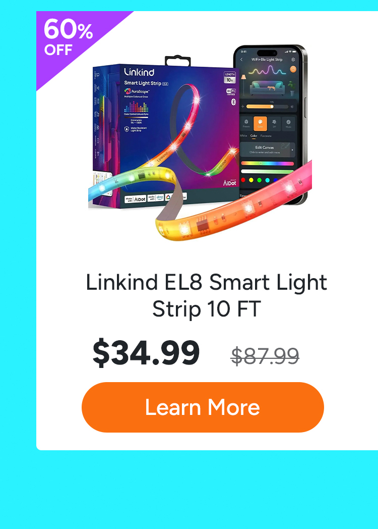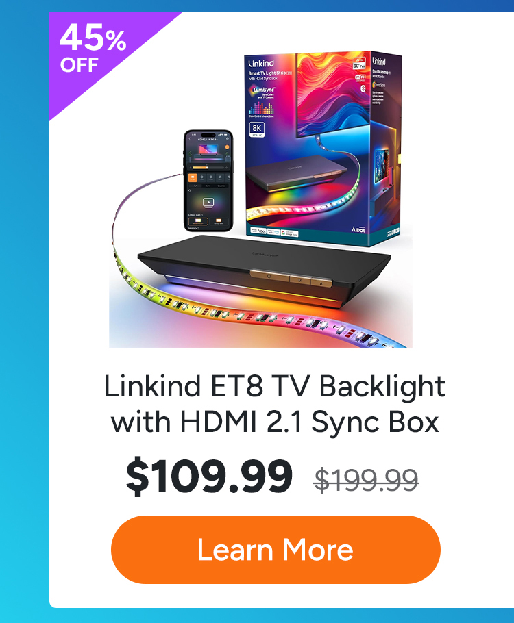 • Linkind ET6 AI LumiSync Smart TV Backlights with HDMI 2.0 Sync Box