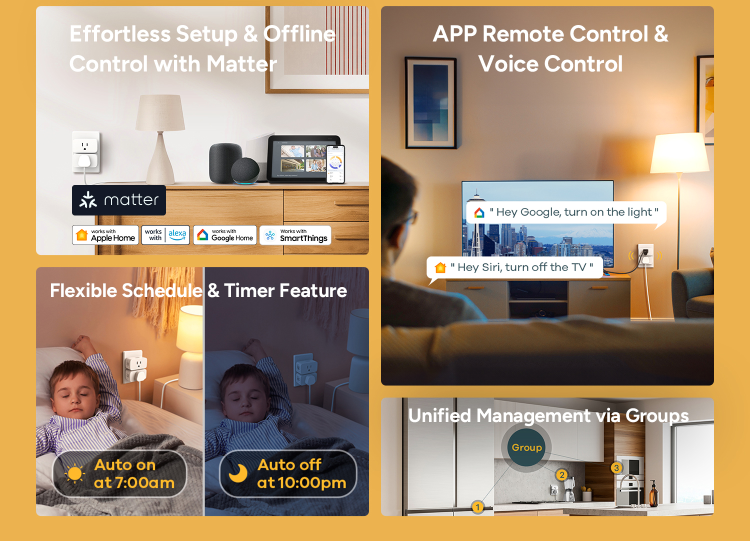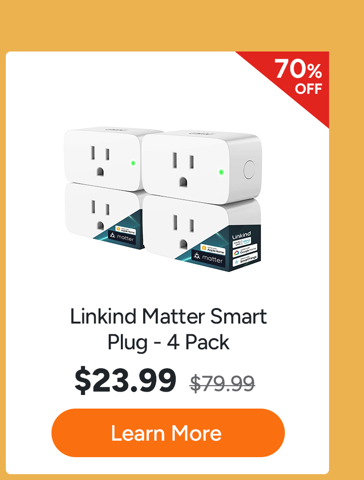 • Linkind Matter Smart Plug, Work with Apple Home, Siri, Alexa, Google Home, SmartThings, Smart Outlet 15A/1800W Max- 4 Pack