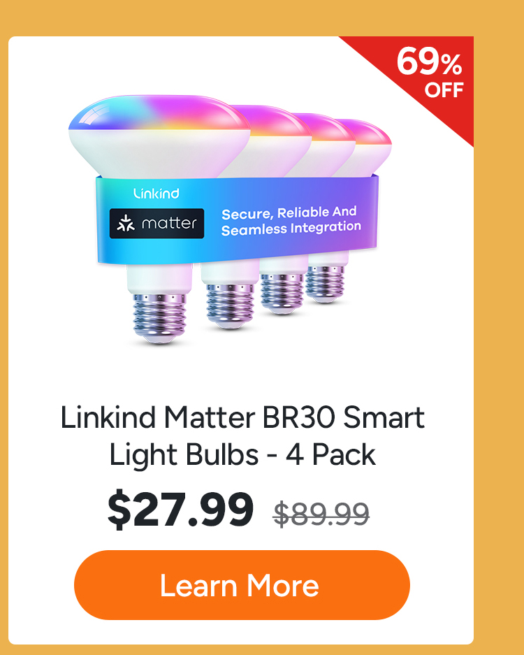 • Linkind Matter BR30 Smart Light Bulbs, RGBTW LED Color Changing Light Bulbs Work with Alexa Apple Home Google Home SmartThings