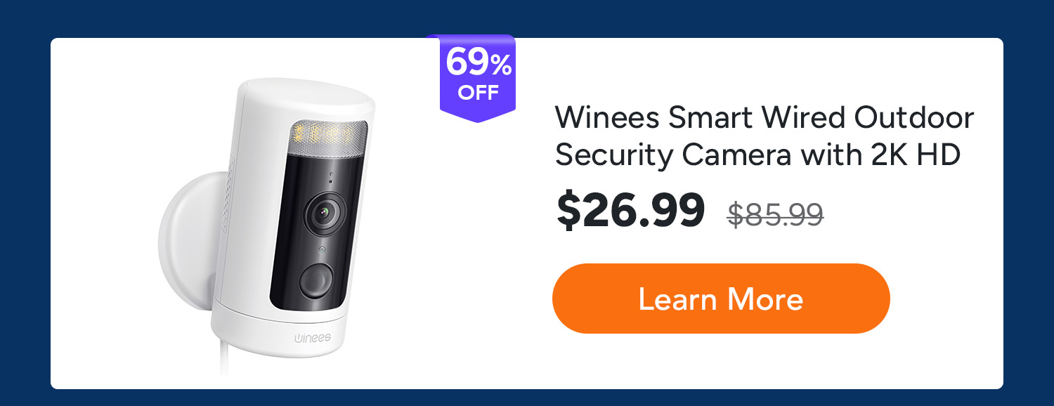 • Winees F103 Smart Wired Outdoor Security Camera with 2K HD, 360° View-1 Pack