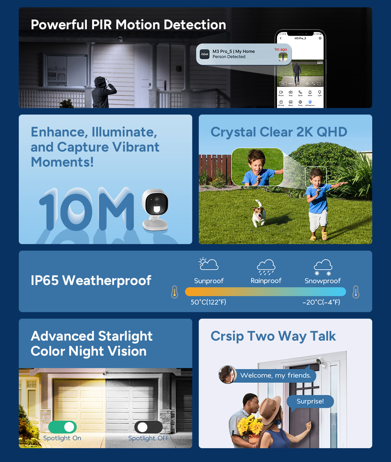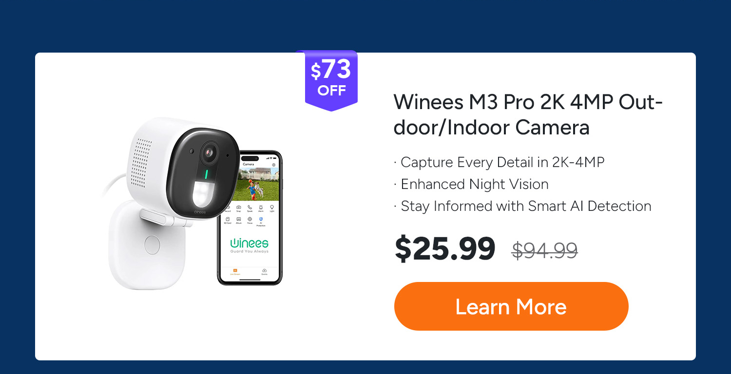 • Winees M3 Pro 2K 4MP Outdoor/Indoor Camera for Home Security, Human/Pet AI Detection, Color Night Vision,-1 Pack