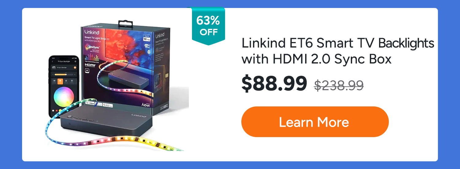 • Linkind ET6 Smart TV Backlights with HDMI 2.0 Sync Box
