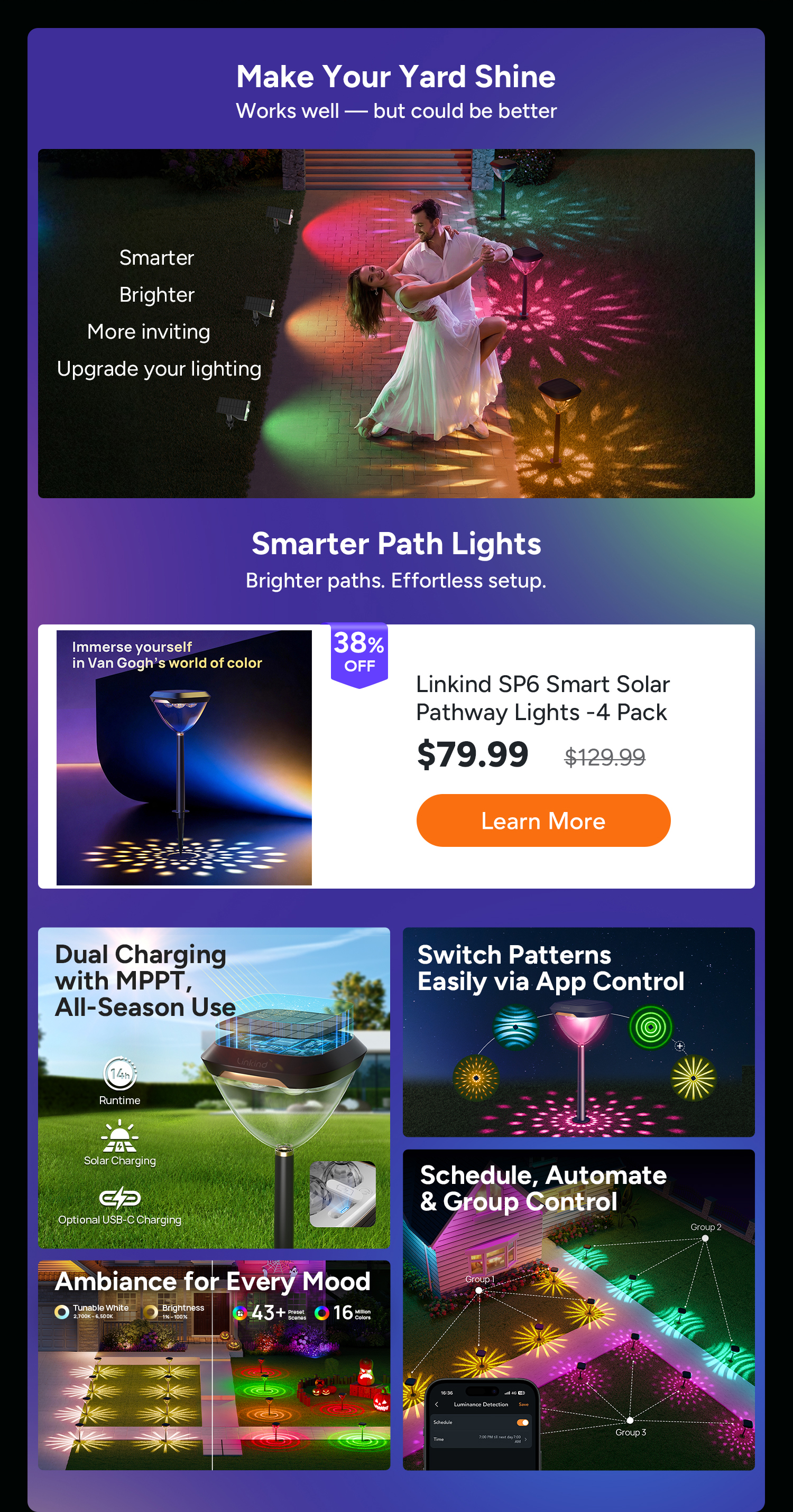 1. Linkind Smart Solar Lights Outdoor Waterproof SL6C- 4 Pack