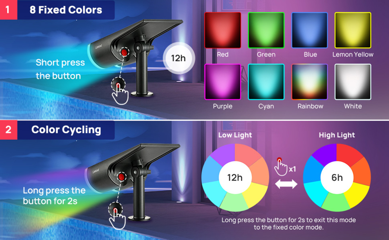 AiDot Linkind RGBW Outdoor Solar Landscape Lighting - 4-Pack